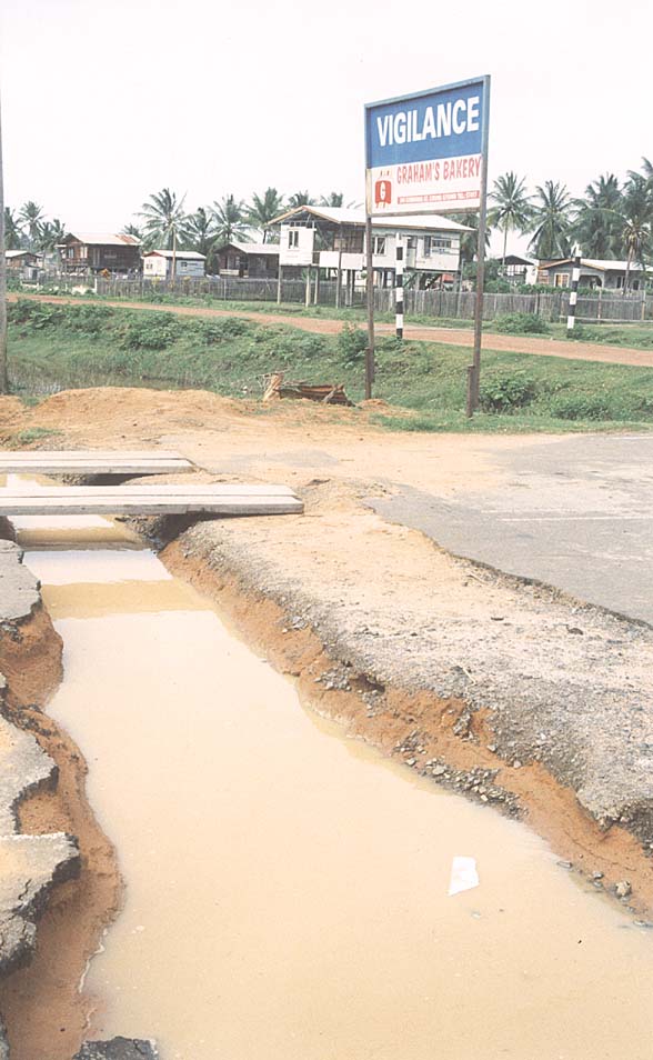 PROTEST ditch: one of the ditches on the road dug by protesters at the junction of the villages of Vigilance and Friendship, near Buxton.