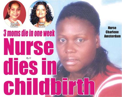 A 48-year old Registered Nurse died at the Georgetown Hospital yesterday shortly after delivering a baby girl—the third maternity patient to succumb under controversial circumstances in a week.
