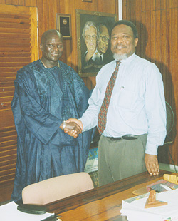 ![]() Doudou Diene, UN Rapporteur on Racism calls on Prime Minister Sam Hinds at his Wight's Lane, Kingston Office |